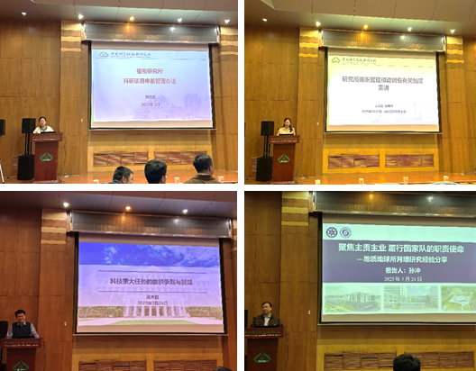 本次活动还邀请了中国科学院力学研究所科技处处长高大鹏、地质与地球物理研究所科技处副处长孙冲,分别作《科技重大任务的组织争取与管理》和《聚焦主责主业 履行国家队的职责使命》专题报告,开展了跨学科领域科研交流研讨。
