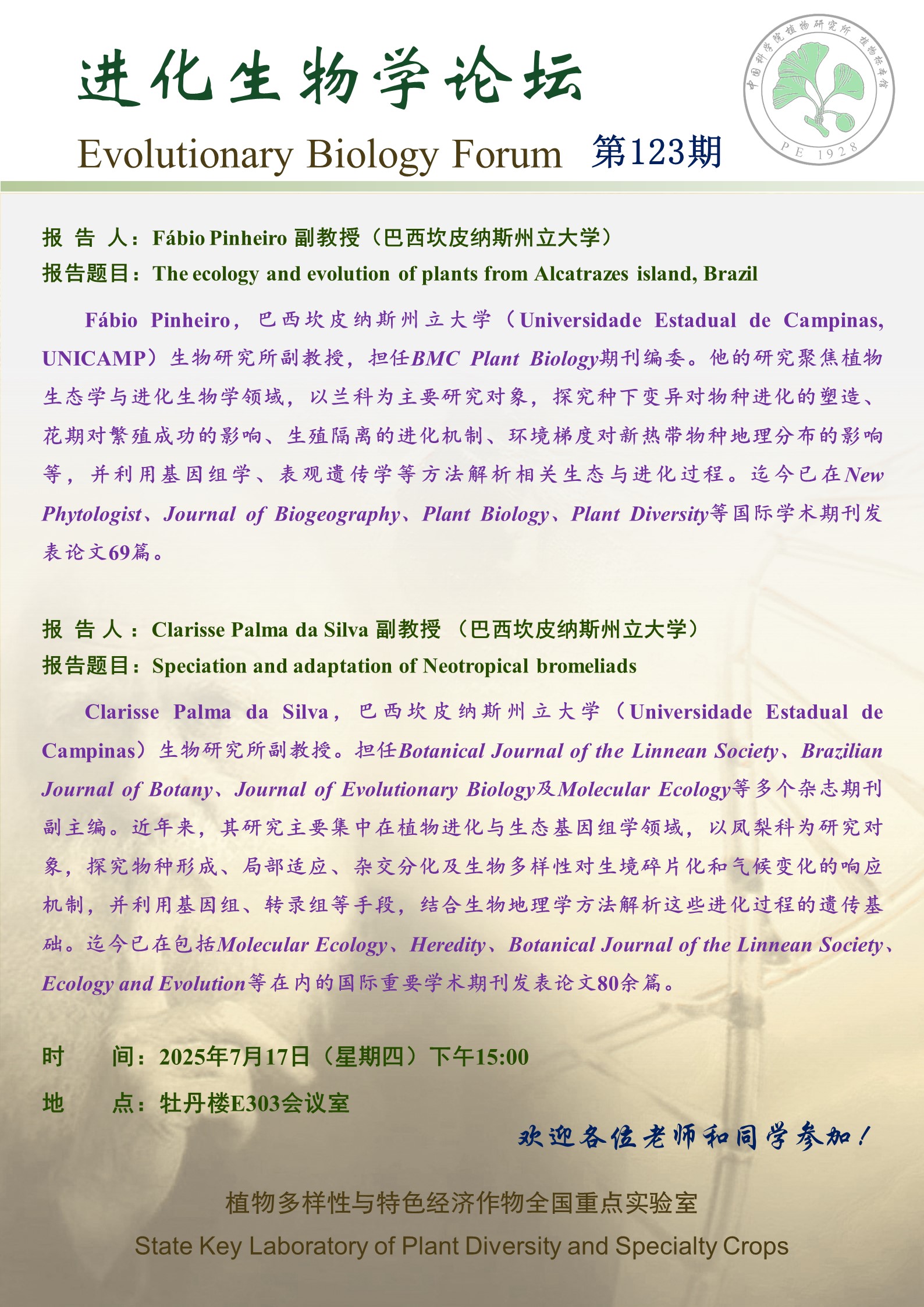2025年7月17日 第123期“进化生物学论坛”