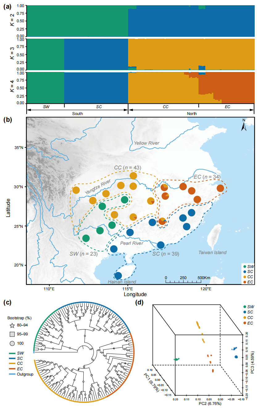 图2 三叶崖爬藤种群遗传结构分析