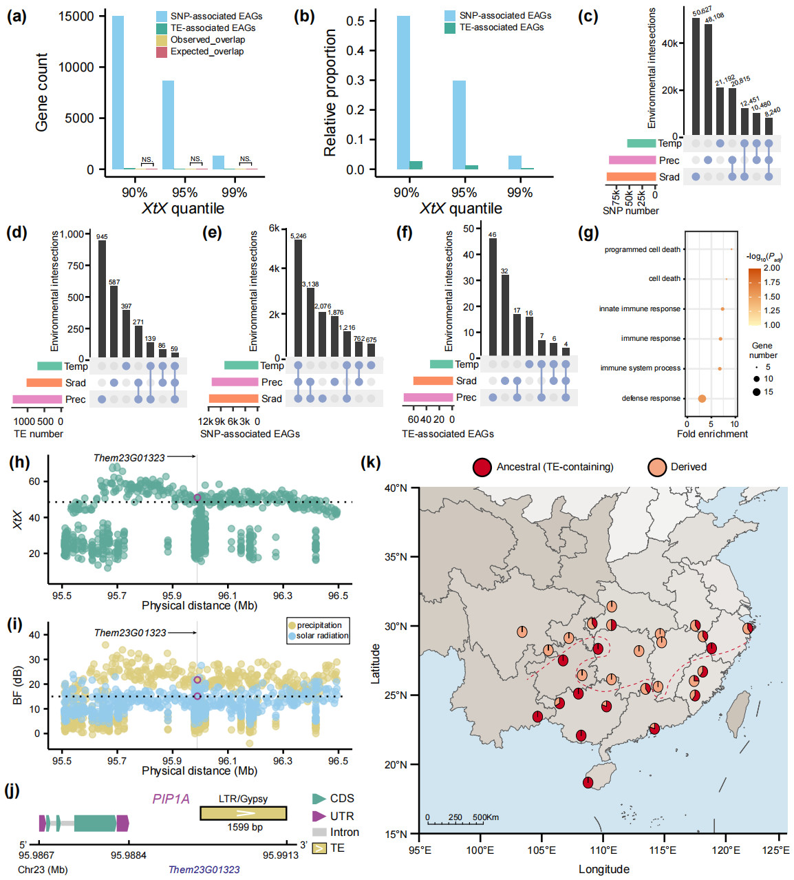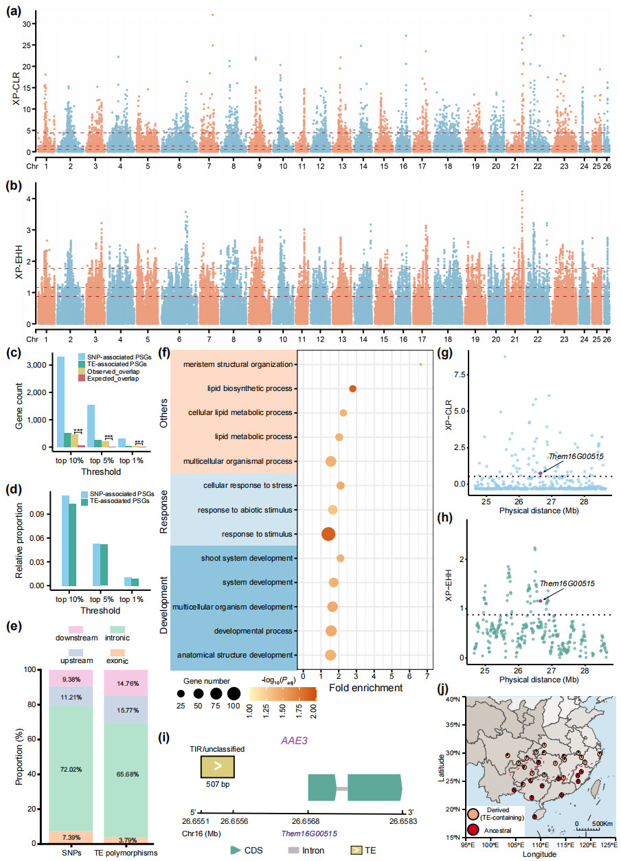 图5 参与气候适应的转座子变异位点与基因鉴定