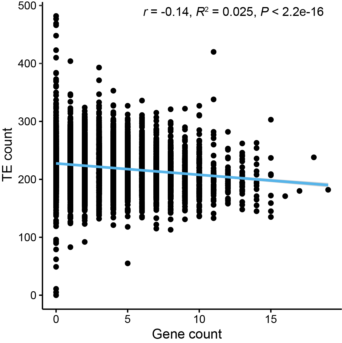 图6 基因密度与转座子丰度相关性分析