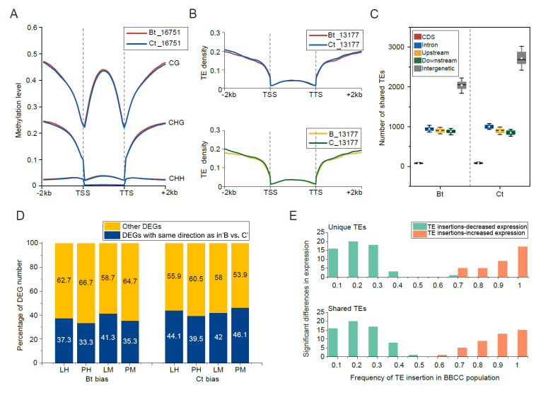 DNA甲基化、转座子分布及亲本遗传对基因表达式样的影响